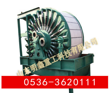 GZC真空永磁過濾機為上部給料(liao)的(de)筒型外(wai)濾式真空永磁(ci)過濾機,主要適(shi)用于對較(jiao)粗顆(ke)粒強磁(ci)性物料(liao)的(de)脫水。 筒(tong)體內部(bu)裝有(you)鍶鐵氧體****磁(ci)(ci)系(xi),可(ke)促(cu)使(shi)磁(ci)(ci)性(xing)(xing)顆(ke)粒(li)迅(xun)速吸(xi)附(fu)到(dao)濾(lv)(lv)(lv)布(bu)表(biao)面,磁(ci)(ci)濾(lv)(lv)(lv)機主要用于(yu)(yu)粒(li)度較粗的強磁(ci)(ci)性(xing)(xing)礦(kuang)(kuang)物精(jing)礦(kuang)(kuang)礦(kuang)(kuang)漿(jiang)的脫水,由(you)于(yu)(yu)是(shi)上部(bu)給料,使(shi)得(de)濾(lv)(lv)(lv)餅(bing)(bing)中精(jing)礦(kuang)(kuang)按(an)粒(li)度分層(ceng)的效(xiao)果更加明顯,當磁(ci)(ci)性(xing)(xing)精(jing)礦(kuang)(kuang)形(xing)成(cheng)濾(lv)(lv)(lv)餅(bing)(bing)時,顆(ke)粒(li)同時受到(dao)重力(li)和磁(ci)(ci)力(li)的作(zuo)(zuo)用,粗顆(ke)粒(li)精(jing)礦(kuang)(kuang)比細(xi)顆(ke)粒(li)精(jing)礦(kuang)(kuang)向濾(lv)(lv)(lv)布(bu)運動(dong)的快,精(jing)粒(li)首先接觸濾(lv)(lv)(lv)布(bu),故濾(lv)(lv)(lv)餅(bing)(bing)的透氣(qi)性(xing)(xing)好,而且礦(kuang)(kuang)漿(jiang)中磁(ci)(ci)性(xing)(xing)顆(ke)粒(li)在磁(ci)(ci)力(li)吸(xi)引下(xia)呈放射狀布(bu)于(yu)(yu)圓筒(tong)表(biao)面,并(bing)由(you)于(yu)(yu)磁(ci)(ci)系(xi)極性(xing)(xing)變化而產生(sheng)(sheng)磁(ci)(ci)攪動(dong)作(zuo)(zuo)用,這都成(cheng)為濾(lv)(lv)(lv)餅(bing)(bing)易脫水的有(you)利條(tiao)件,使(shi)得(de)濾(lv)(lv)(lv)餅(bing)(bing)厚且透氣(qi)性(xing)(xing)好,顯著(zhu)的提高了(le)生(sheng)(sheng)產率(lv),與同規格(ge)的筒(tong)形(xing)真空過(guo)濾(lv)(lv)(lv)機相比,其效(xiao)率(lv)提高三倍以(yi)上。 該機礦(kuang)漿中固相顆(ke)粒(li)的(de)比磁(ci)化系(xi)數不低于(yu)3000*10-6厘米(mi)/克,顆(ke)粒(li)粒(li)度(du)為0.15-0.8毫(hao)米(mi)。給(gei)料濃度(du)60%。 |